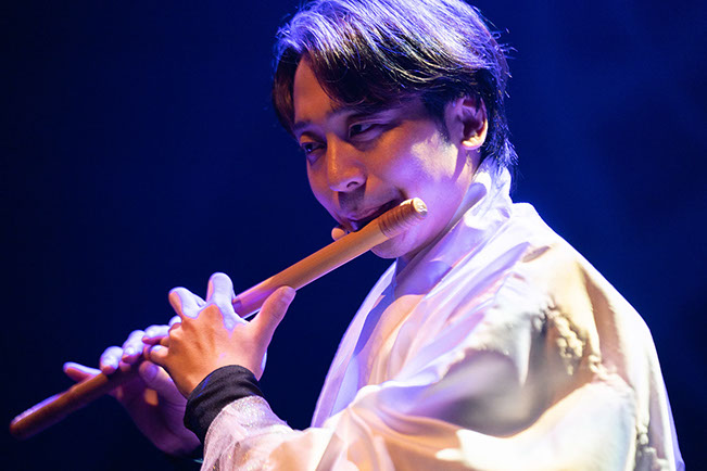 2人目は、福岡市出身で、現在東京を拠点に日本全国を渡り歩き、古典の奏法を元に次世代のジャンルを取り入れ、市川團十郎の舞台作品にも数々出演し、今や尺八界トッププレイヤーとして君臨する尺八奏者瀧北榮山。