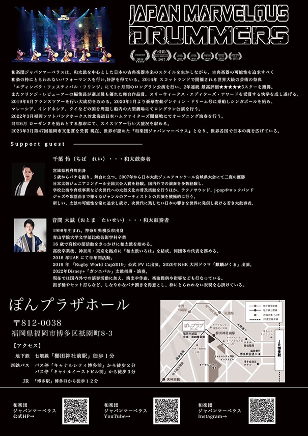 福岡市を拠点に活動する、和太鼓を中心としたプロのエンターテイメントチーム