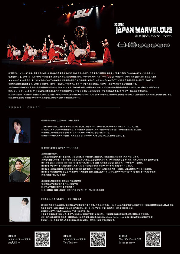 和楽団ジャパンマーベラスの2023年を締めくくる今回の舞台は、共演者として3名の奏者を迎えます。